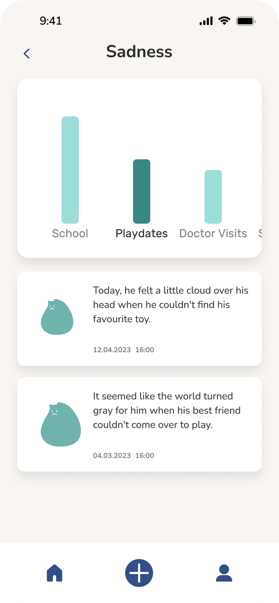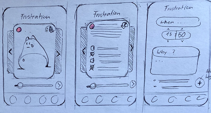 The solution was worked out in several ideation sessions. In the end, it is about logging the moments when children experience various emotions to be able to read upon it later and discuss it with your child. For this you have a routine which reminds you of talking about it with your kid and as a core functionality the log of the emotions. To understand this path, take a look at the user flow: