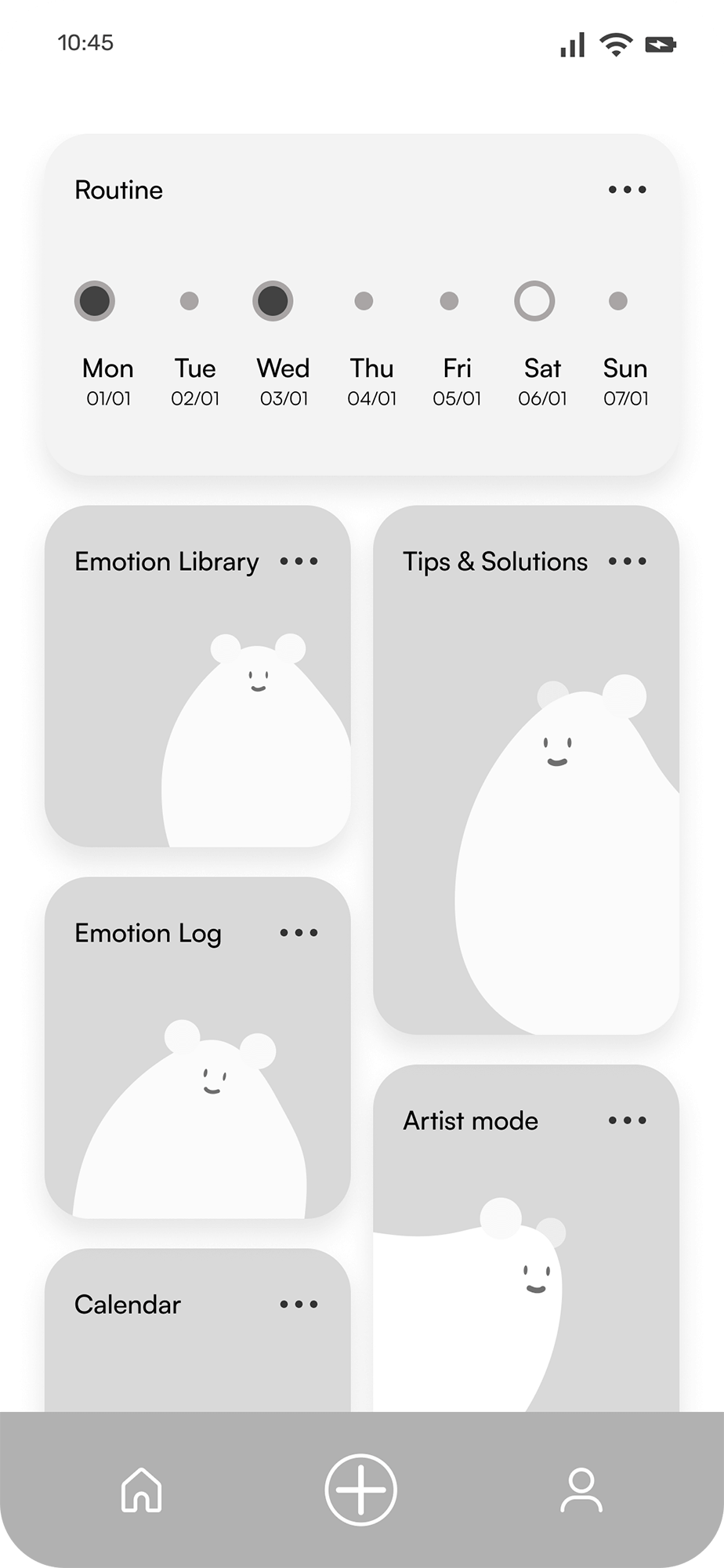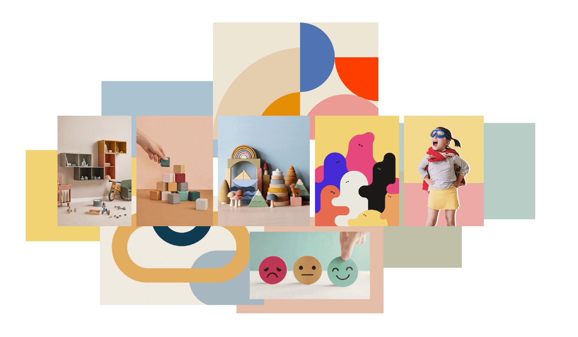The mood board was created and confirmed with the target group to reflect the following adjectives: Playful, Empowering, Cheerful, Calm, Reliable.